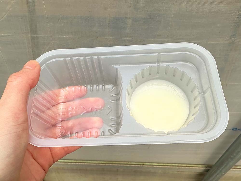 ケースに練乳を入れてもらい、早速いちご狩りをスタート!