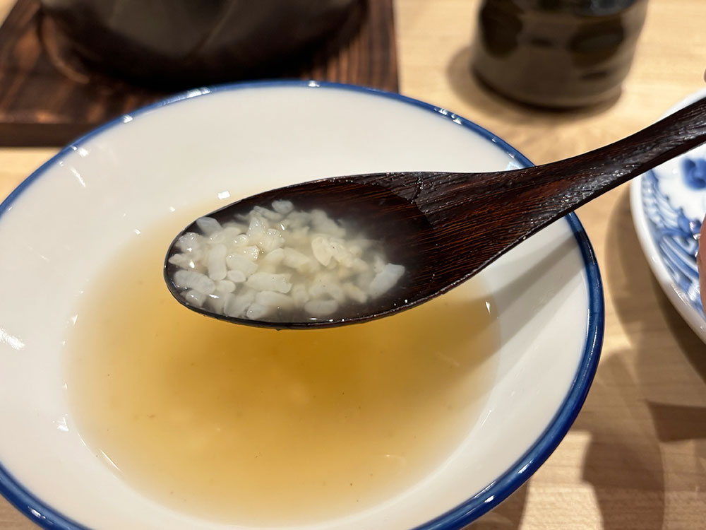 釜に残ったお米は、出汁をかけていただくこともできます。