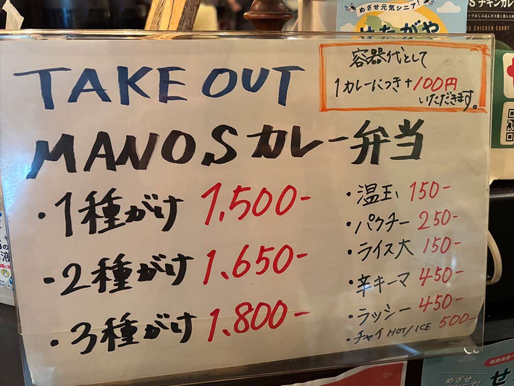 創作カレー MANOSは、テイクアウトもやっています。