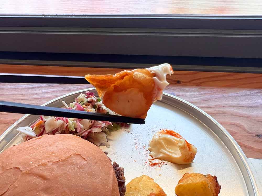 ハンバーガーはちょっと小さめですが、ジューシーで食べ応えは抜群。