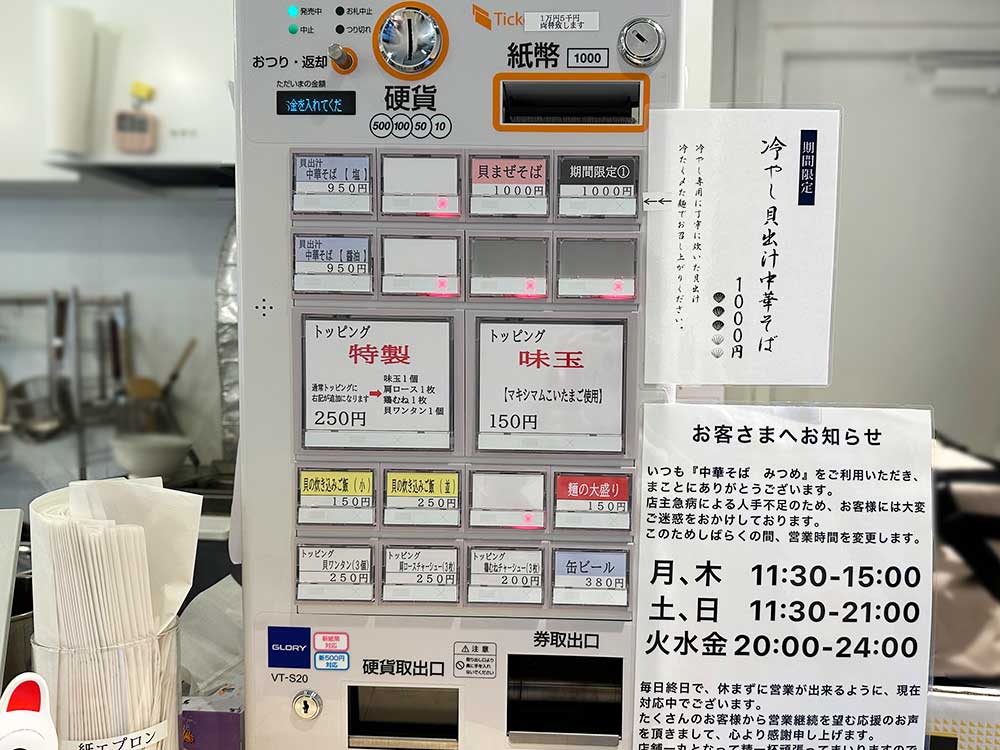 中華そば みつめは、発券機で注文します。