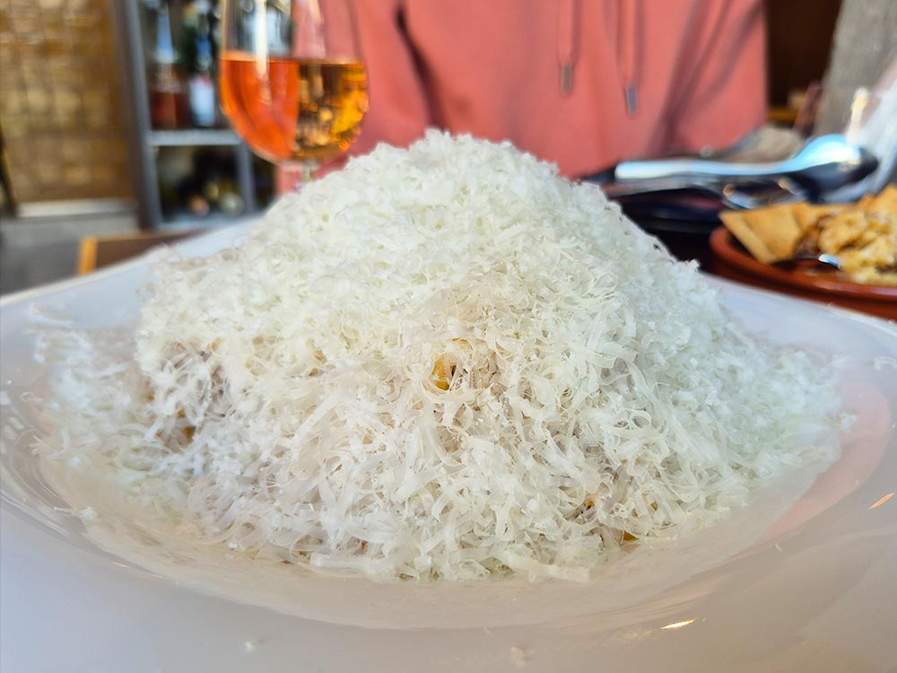 かまくらチーズ、パスタが見えなくなるまで山盛りにチーズを盛ってくれます。