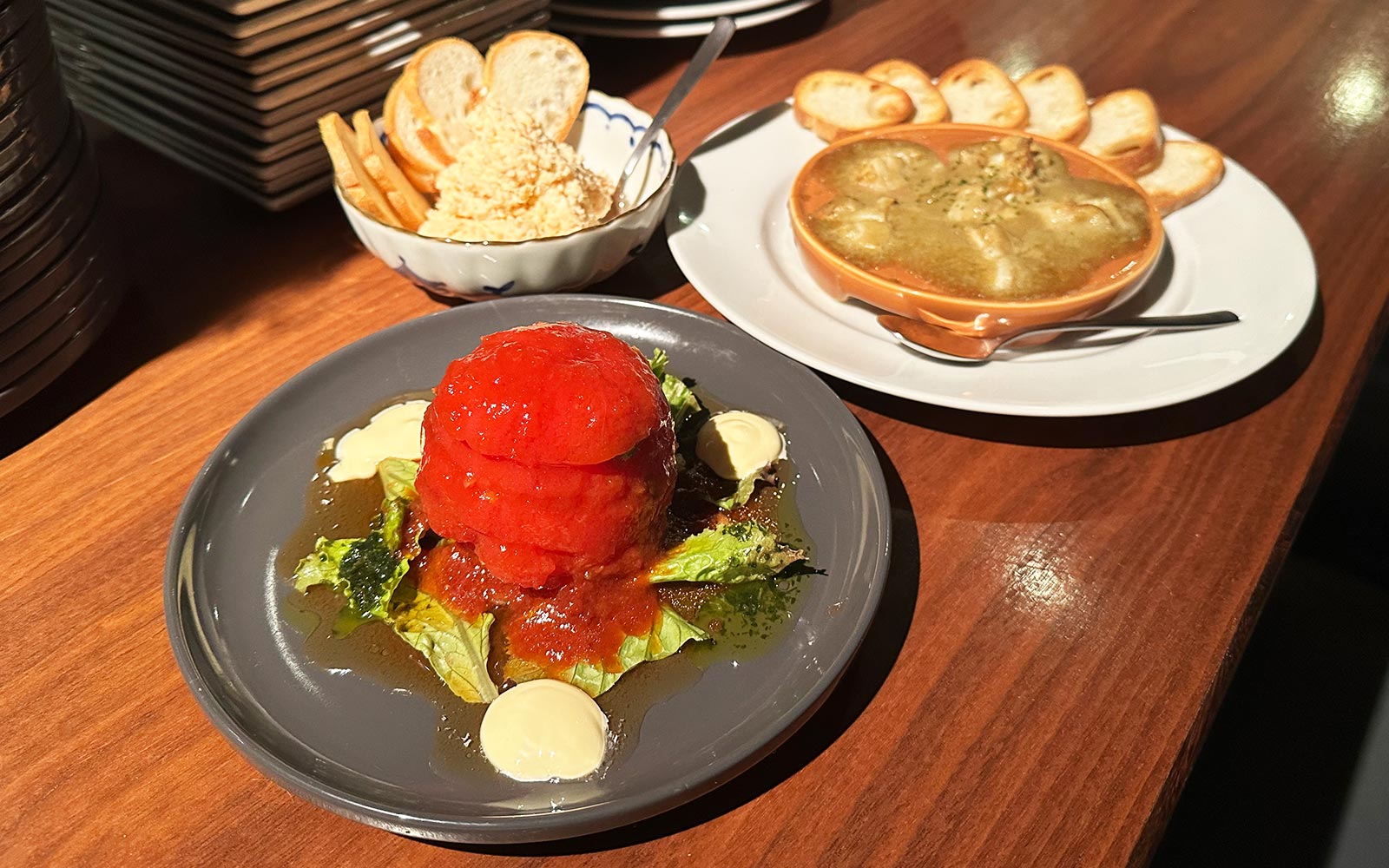 今回は「冷やしトマト2」、「サーモンリエット」、「帆立の蟹味噌焼き」を注文しました。