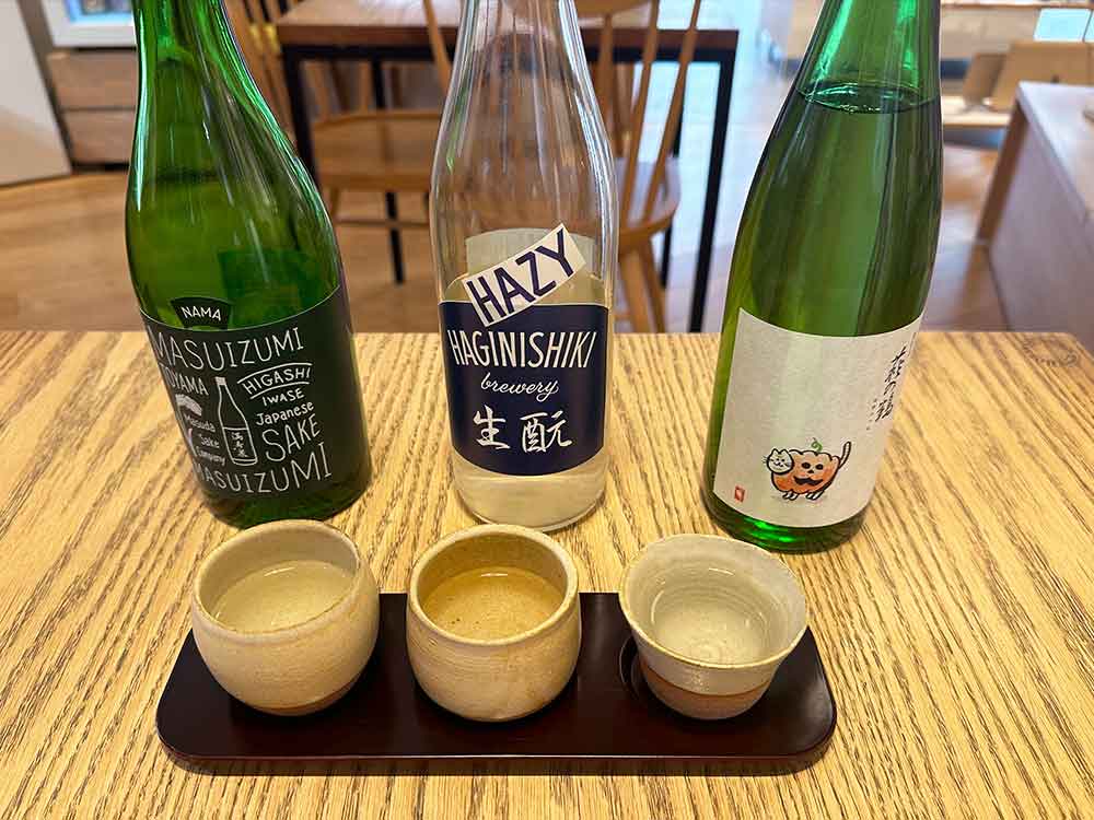 左から「満寿泉 Green」「萩錦生酛純米 HAZY」「萩の鶴 別仕込 ハロウィン猫」です。
