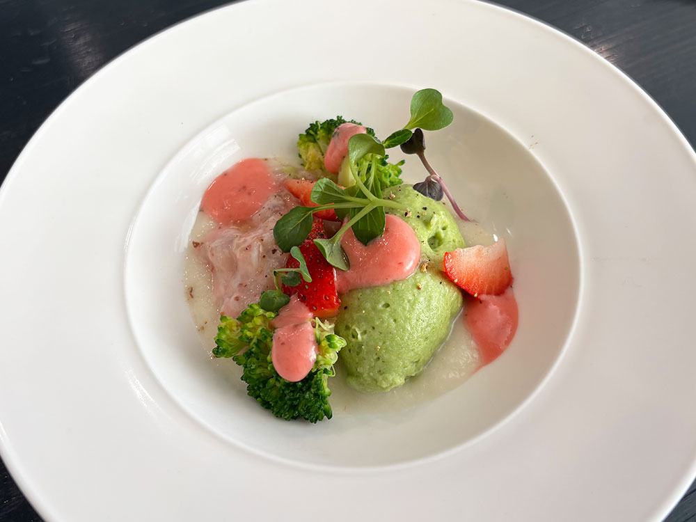甘酸っぱいいちごのソースと塩味のあるドレッシングが、野菜のおいしさを引き立たせていました。