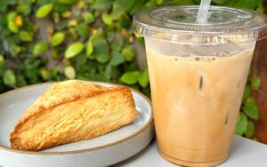 「黒糖コーヒー牛乳」は甘さ控えめで、スコーンとの相性が抜群でした。