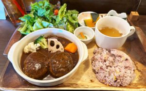 今回は「ごぼうレンコン煮込みハンバーグ(1,100円)」を注文。