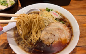 小麦が香るコシの強い麺は、すすっていて楽しく、いくらでもいけてしまいそうです。中盛にしてよかった!