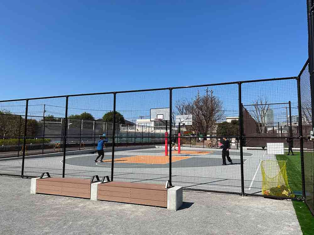 多目的広場は芝生のあるエリアと、バスケットボールのエリアの2種類がありました。